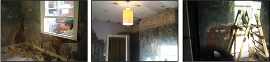 Strip out, make repairs and re-plaster ceiling and all walls of bedroom:Remove radiator, all existing wallpaper and loose plaster/render. Plasterboard ceiling, render and fill wall areas as necessary and add new double socket points. PVA and plaster all walls and ceiling, paint, refit radiator, sockets fronts and central light.